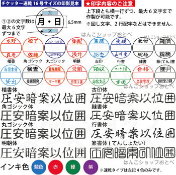 ●印面サイズ:16ミリ(印面乾燥を防ぐロック機構、及びパンチ穴機構付き) ●書体:8書体【楷書、行書、隷書、古印、明朝、角ゴシック、丸ゴシック、篆(てん)書】 ●インキ:4色【青(藍色)・赤・緑・紫】・油性染料系【インキ型番Y-72(品番XQR-6N)】※補充インキは シャチハタ チケッター 速乾性タイプ専用 補充インキ【インキ型番Y-72(品番XQR-6N)】です。